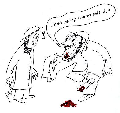 Запрещается читать «Шма Исраэль» рядом с экскрементами, если только они не прикрыты чем-либо, как сказано в Торе: «И закрой испражнение твое, ибо Господь, Бог твой, ходит среди стана твоего» (Втор. 23,14-15). Поэтому если в комнате находятся экскременты, запрещается читать там «Шма Исраэль» пока они не убраны или не прикрыты. Однако если количество экскрементов чрезвычайно мало, достаточно плюнуть на них, ибо слюна в таком случаем может считаться достаточным прикрытием. Мудрец по имени Рава добавил, что плевок должен быть массивным (содержать большое количество слюны). Если экскременты находятся в ямке, разрешается прикрыть ее сандалией и затем читать «Шма Исраэль». Один из мудрецов спросил: что будет если экскременты пристанут к сандалии? Можно ли в таком случае читать «Шма Исраэль? В чем тут проблема? С одной стороны, сандалия используется как прикрытие для экскрементов, как требует Тора, с другой стороны, поскольку экскременты пристали к ней самой, быть может, ее нельзя считать прикрытием? Мудрецы Талмуда не дали однозначного ответа на этот вопрос.